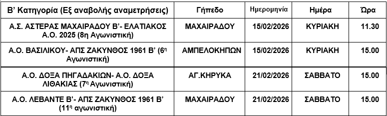 Β’ Κατηγορία ΕΠΣ Ζακύνθου: Ορισμός εξ αναβολής αναμετρήσεων!