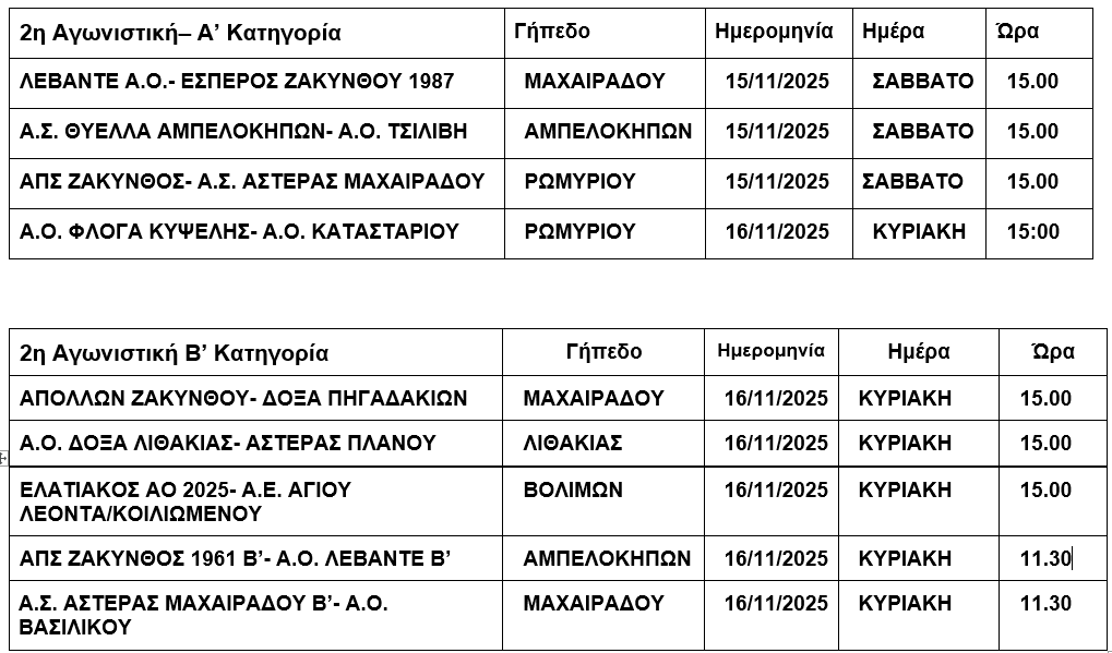 • Η 2η αγωνιστική σε Α’ και Β’ Κατηγορία ΕΠΣ Ζακύνθου