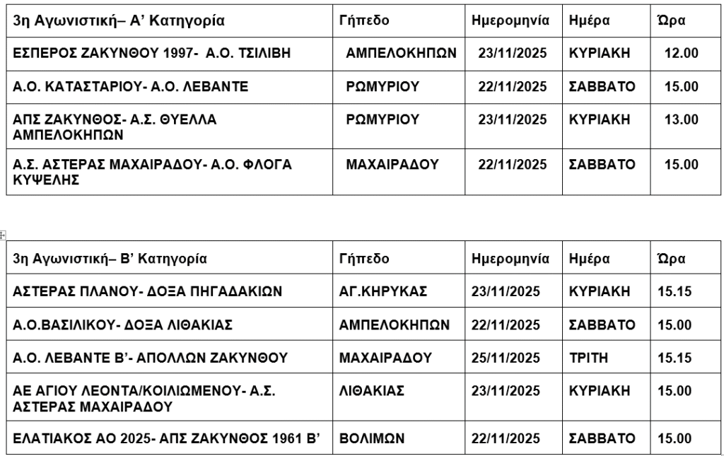 • Η 3η αγωνιστική σε Α’ και Β’ Κατηγορία ΕΠΣ Ζακύνθου